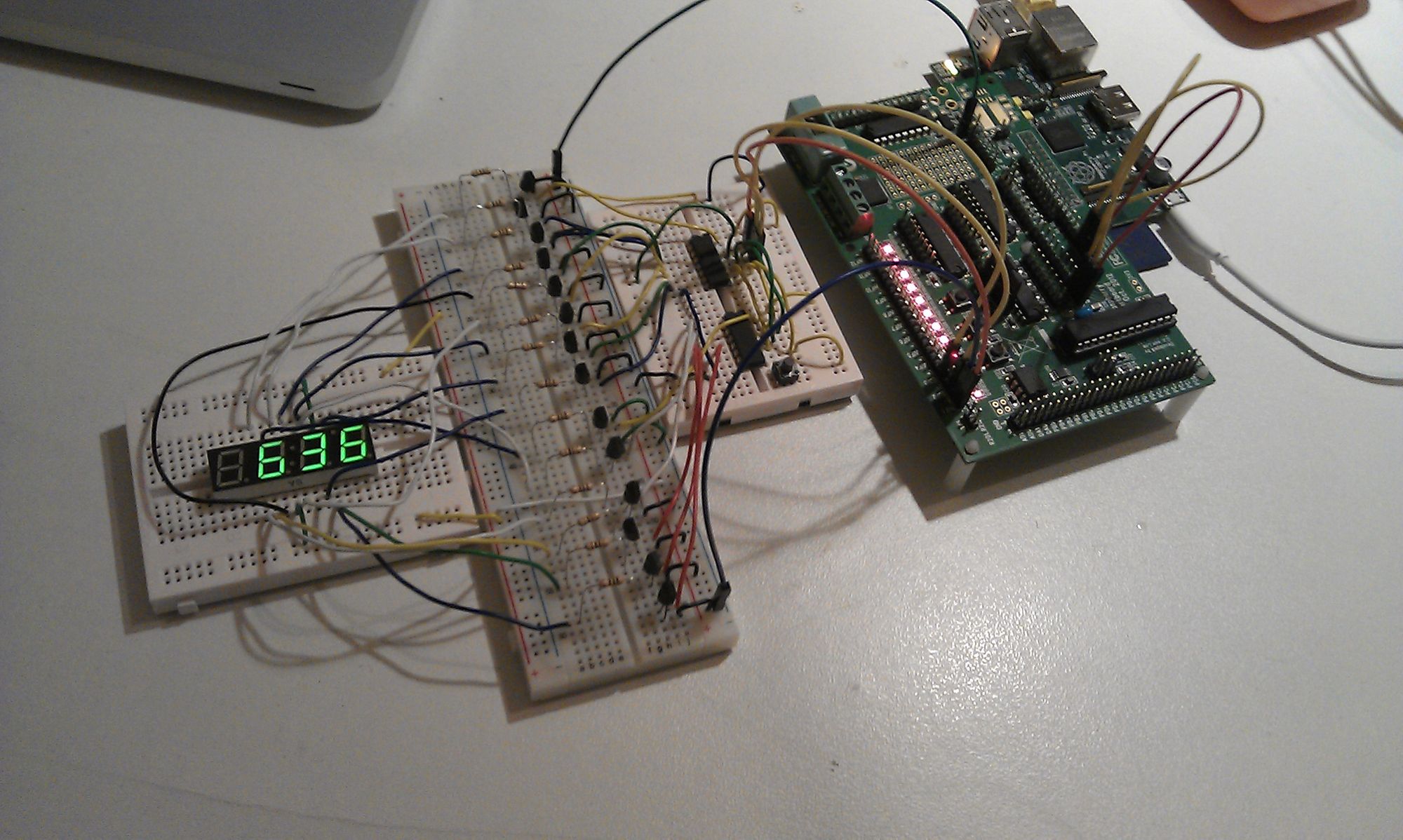 The second difficulty was that you can’t show multiple digits at the same time on this kind of display. There’s a common anode for each digit, and then a common cathode for each type of segment across all digits. That means you have to flash each digit quickly, one-at-a-time, similar to how you’d use a PWM to control the brightness of an LED. If you do that fast enough, it gives the impression of a steady display. That required a reasonably high throughput of data in the shift registers.