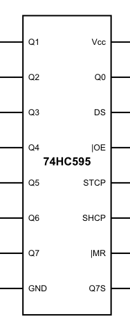 If you connect this pin to the serial input pin (DS) of a second register, you can increase your shift capacity, allowing them to work together like a 16-bit shift register. If you connect the serial output (Q7S) on your second register to the serial input of a third register, they’ll act like 24-bit, and so on.